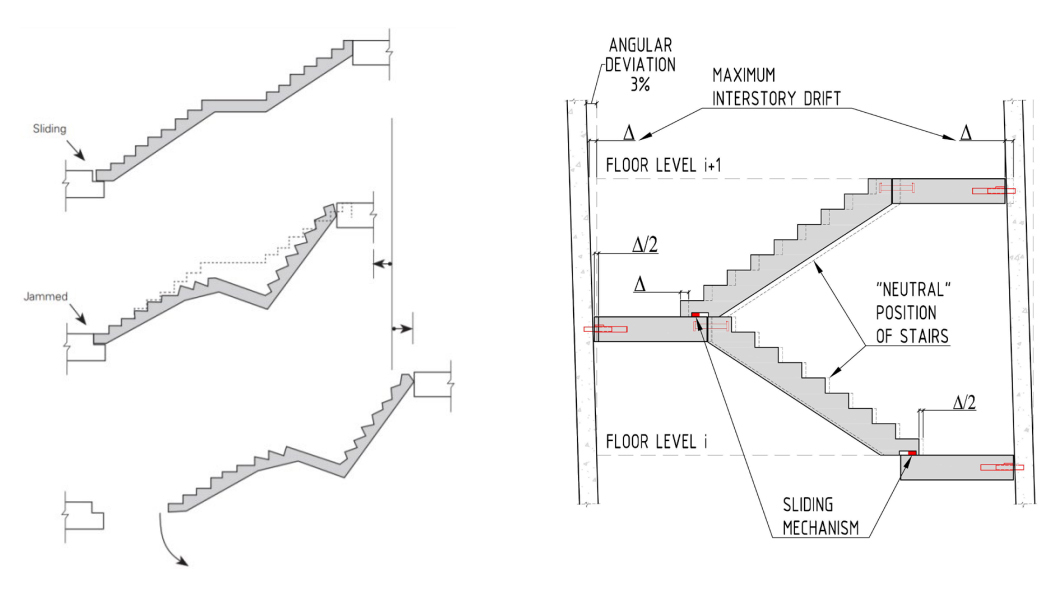 A report /1/ prepared by Des Bull after the 2011 Christchurch earthquakes, is related to the behaviour of stair and ramps in multistorey buildings during an earthquake. The report addresses the problems with “interstorey drift” and constraining forces. The report made iC interested in the subject.
