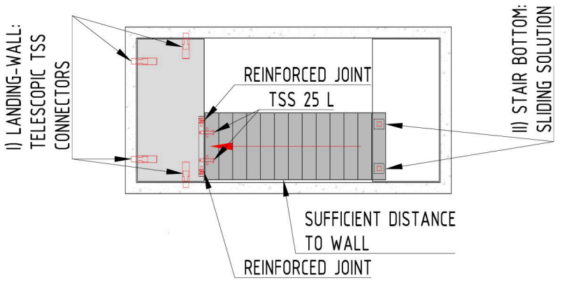 Figure 3: One stair and one landing casted together as one unit – recommended solution.
