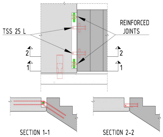 earthquake forces. The earthquake forces are transferred in separate reinforced joints. This is illustrated in