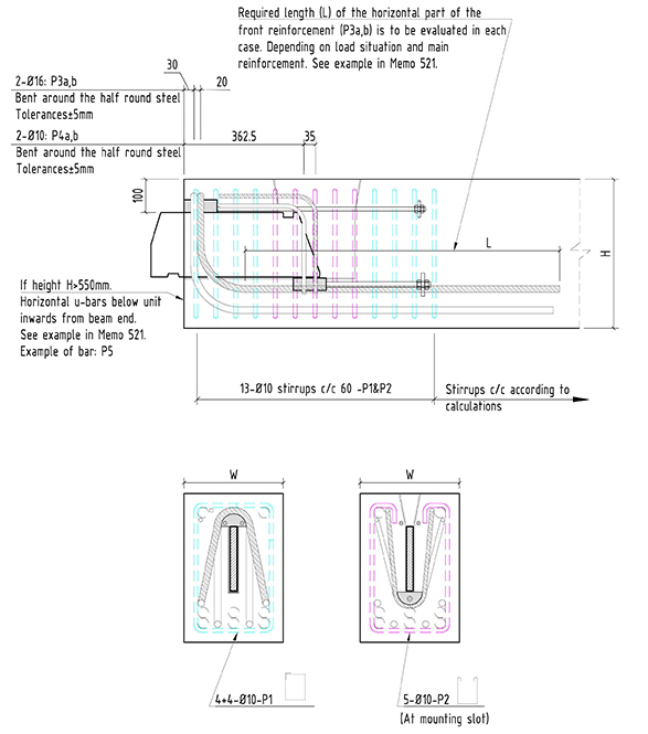 | B 300 | Beam unit Cast into the concrete beam and anchored with specified anchoring reinforcement. | 300 kN | |