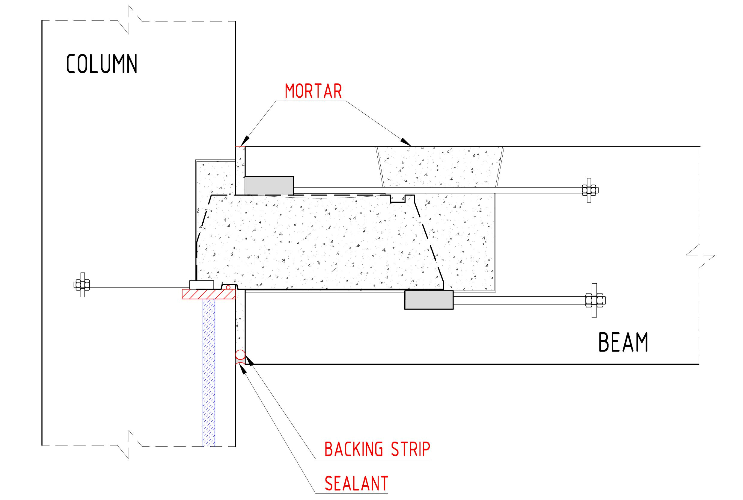 The sides and bottom perimeter of the space between the beam end and the column can be sealed with a