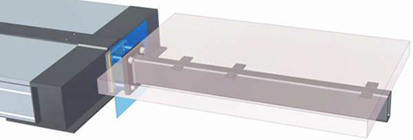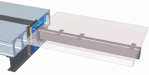 | Bildet viser komplett BWC 40 U-H system. Vertikal blå plate simulerer gummimembran for vanntetting. | ![]() |