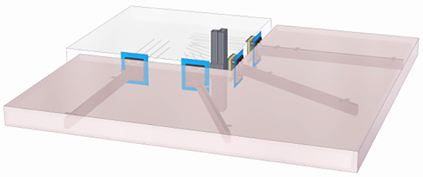 | Plasstøpt dekke med innstøpt plate i dekkekant Ved bruk av stål bæresystem og hulldekker, anbefales å erstatte hulldekkene med et dekke som er armert i Bildet viser BWC 40 U-H med sveiseplate i dekkekant og stålsøyle i hjørnet | ![]() |